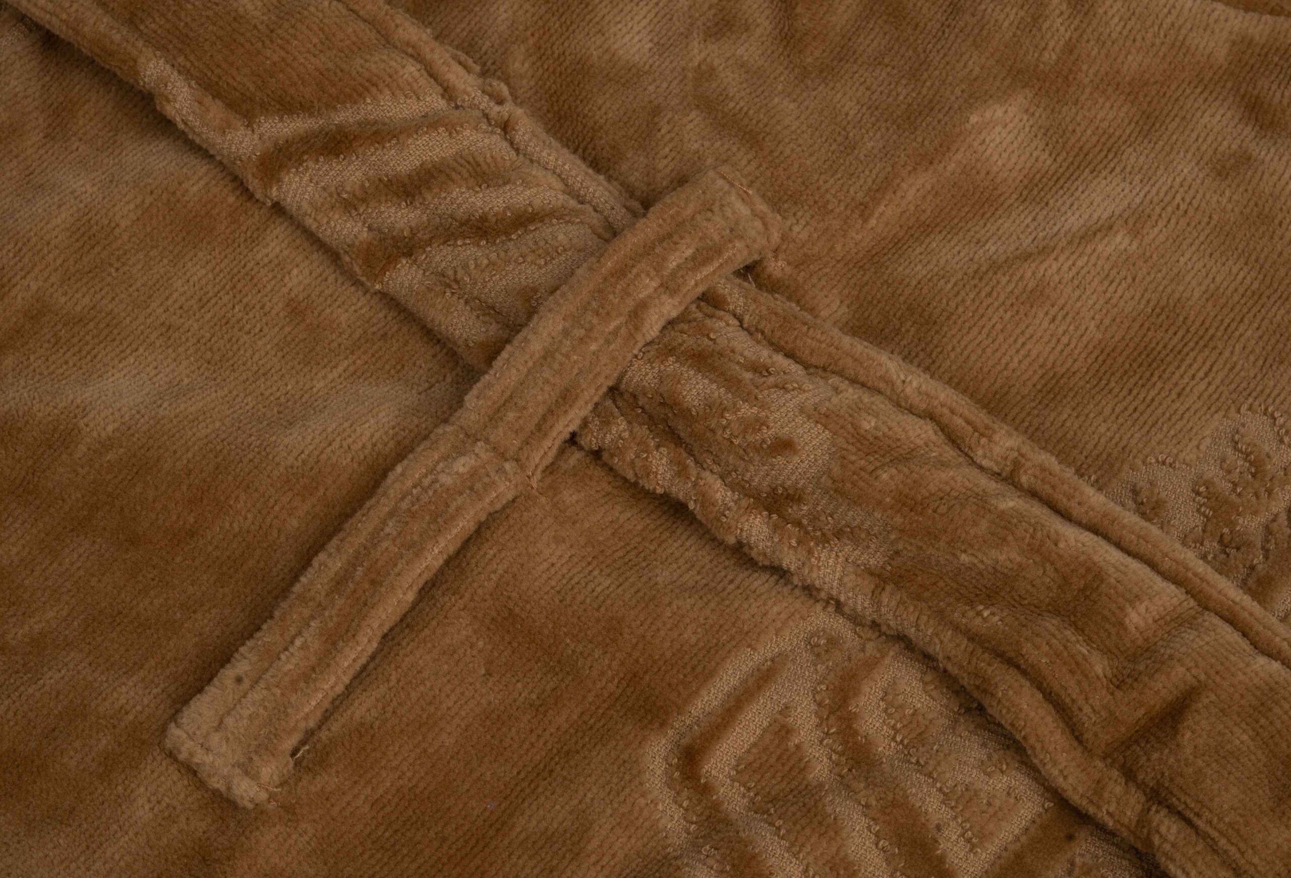 Brown Shawl Collar Jacquard Velour Bathrobe (CNFIBO) – Rich & Refined Texture!
